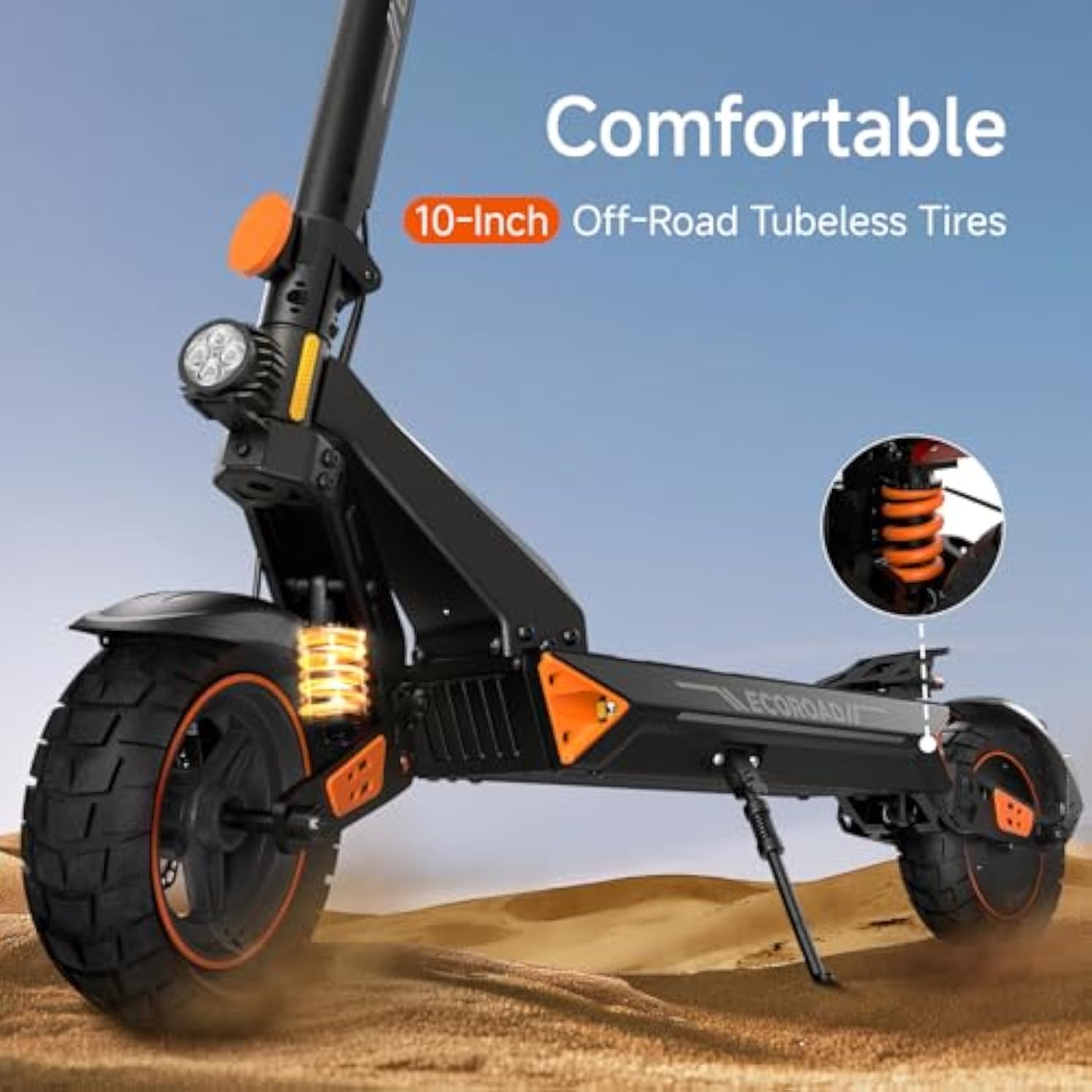 - 【ONQUER 50 MILES IN COMFORT & STYLE】 Say goodbye to range anxiety with the ECOROAD ET8 off-road electric scooter! The high-efficiency 1000W motor & massive 48V 20Ah battery deliver up to 50 worry-free miles per charge. Glide effortlessly on 10-inch premium air-filled OFF-ROAD TIRES that devour bumps and grip diverse terrain. Feel the freedom to roam further, smoother, and in total comfort.