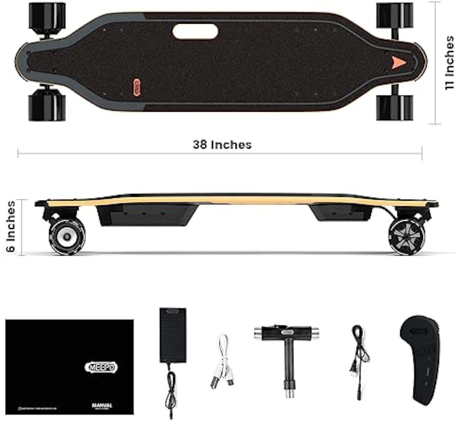 - [Package List] The MEEPO V5 Standard Electric longboard Skateboard is a good choice for gift deal. It's packing list includes the charger, charger adapter cable, remote control, skateboard repair tool, and user manual. Please read the instruction manual in detail before use, if you have any questions MEEPO is always ready to help you solve the problem